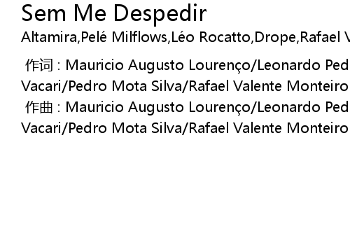 | [00:00.000] | 作曲 : Mauricio Augusto Lourenço/Leonardo Pedro Rocatto Vacari/Pedro Mota Silva/Rafael Valente Monteiro Dos Santos |