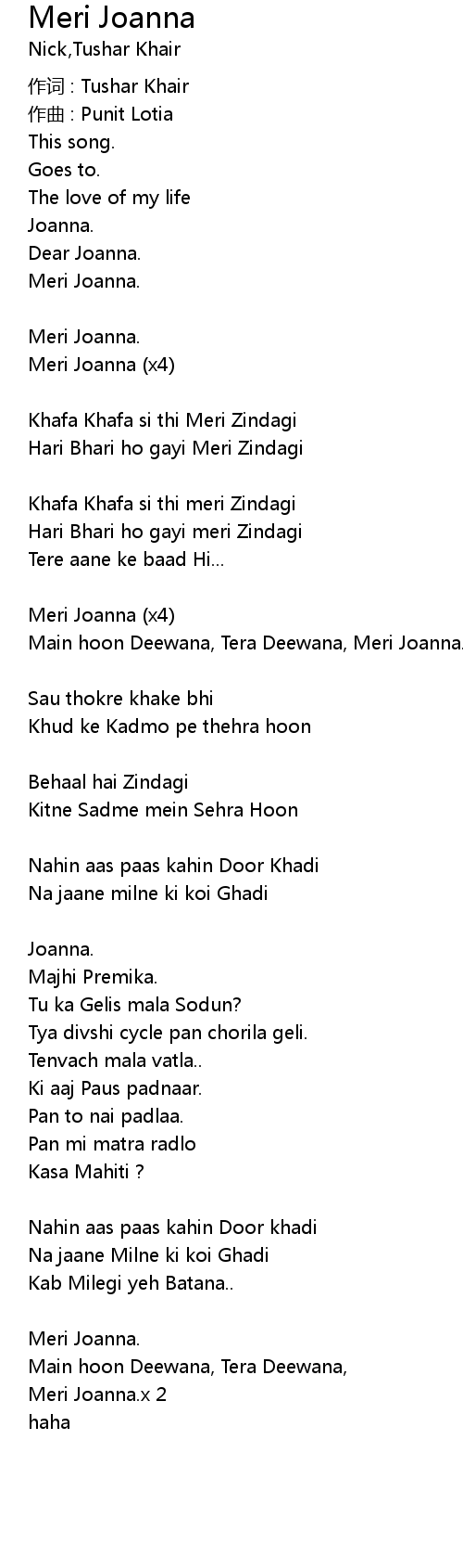 | Main hoon Deewana, Tera Deewana, Meri Joanna. | |