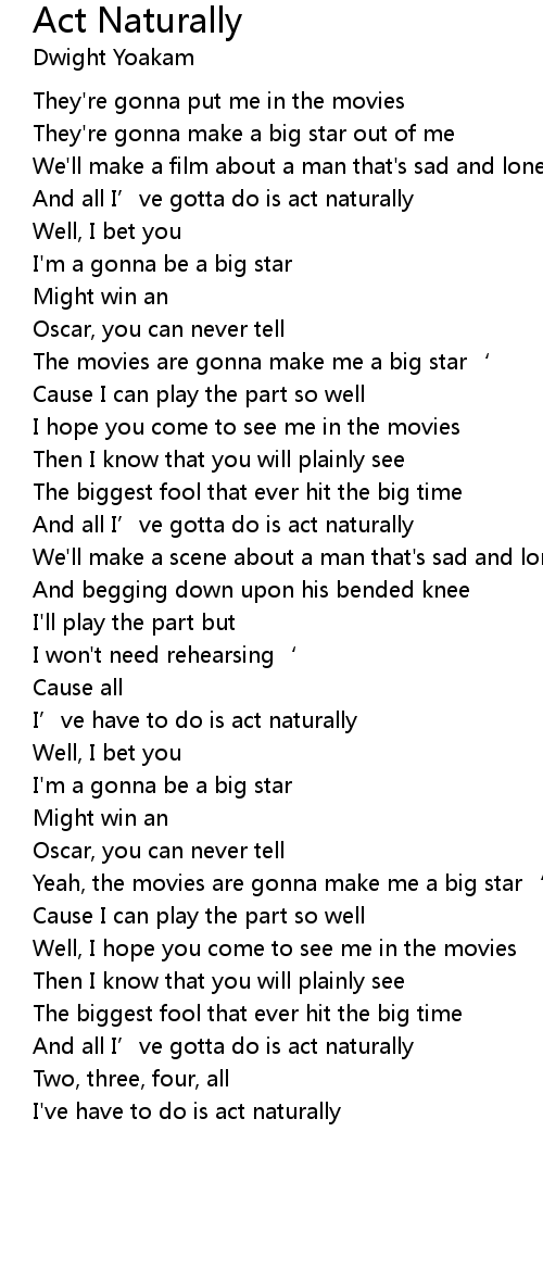 | And all I' ve gotta do is act naturally | |