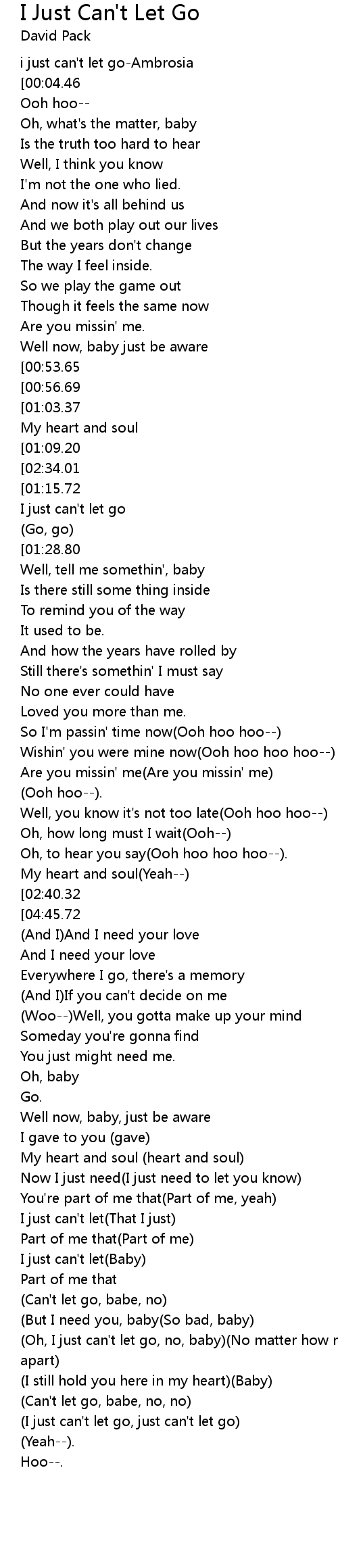i just can't let go-Ambrosia |