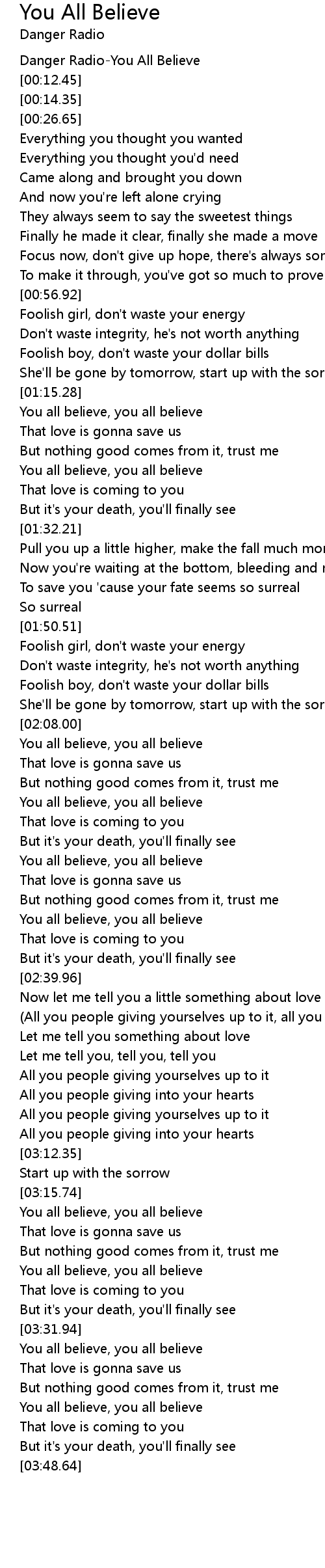 Danger Radio-You All Believe |