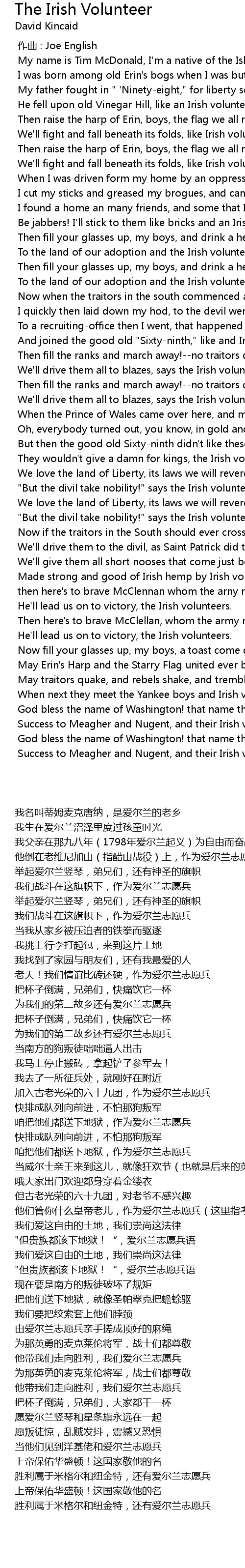 | [00:40.373] | We' ll fight and fall beneath its folds, like Irish volunteers! |