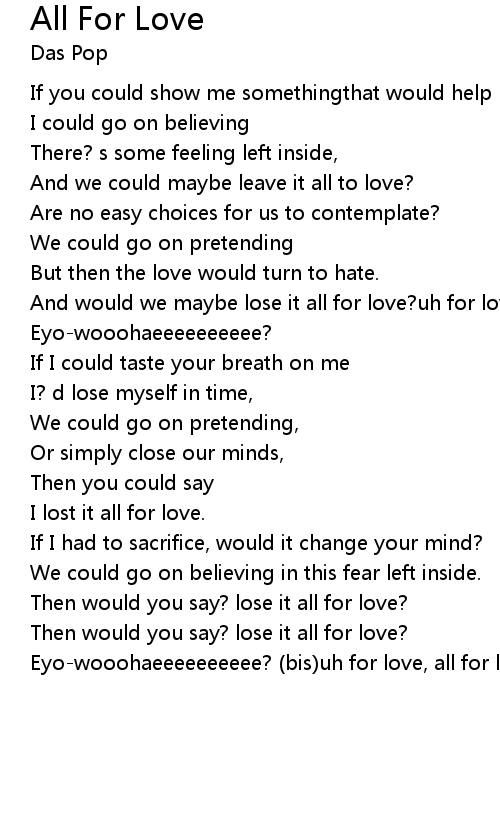 | Eyo-wooohaeeeeeeeeee? (bis)uh for love, all for love |