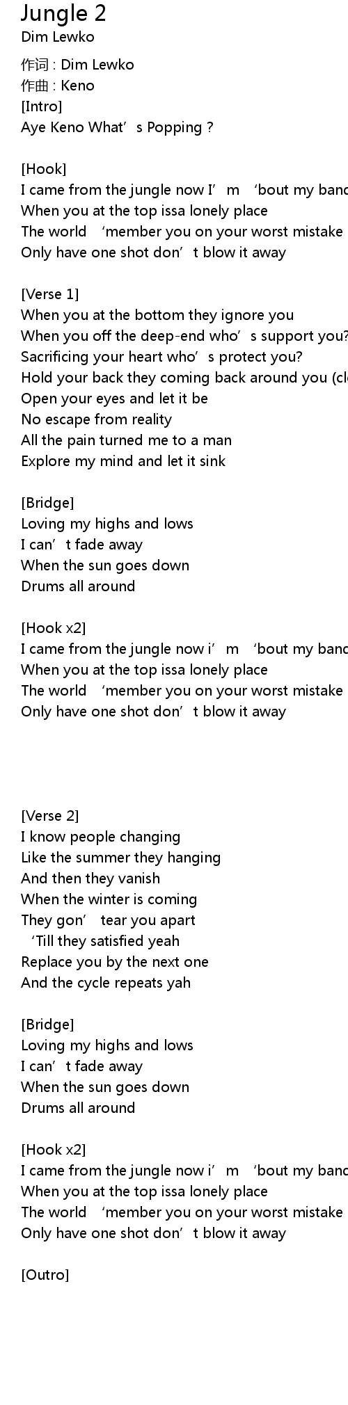 | I came from the jungle now I' m ' bout my bands | |