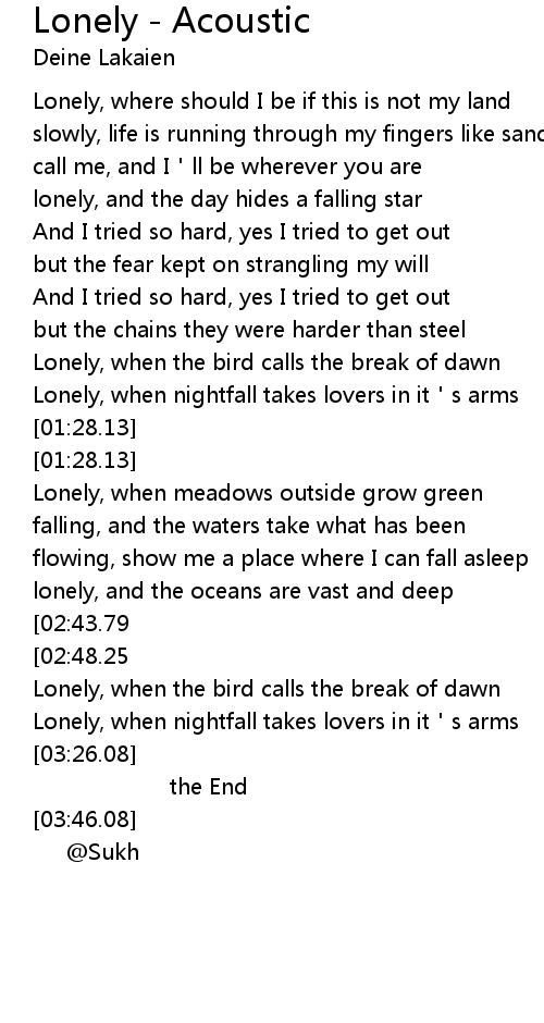 | [00:10.75] | Lonely, where should I be if this is not my land |