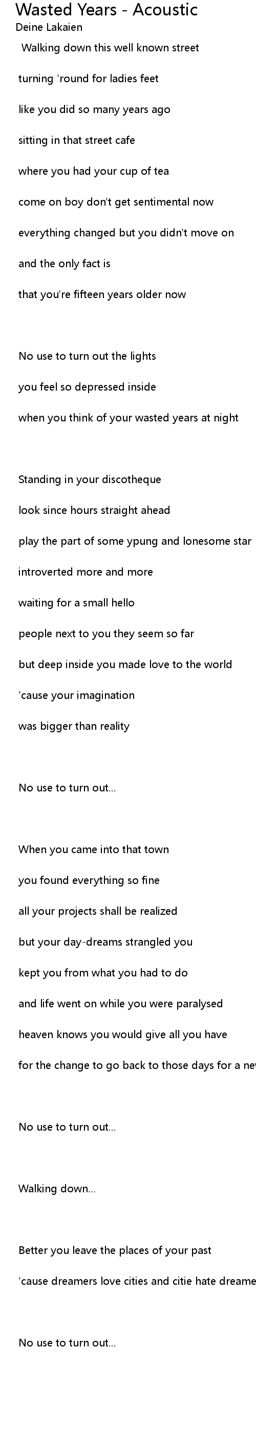 when you think of your wasted years at night |