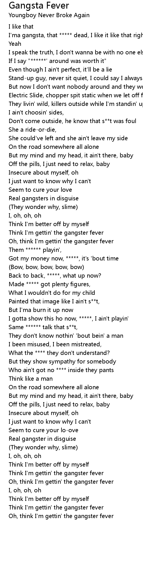 I'ma gangsta, that ***** dead, I like it like that right there |