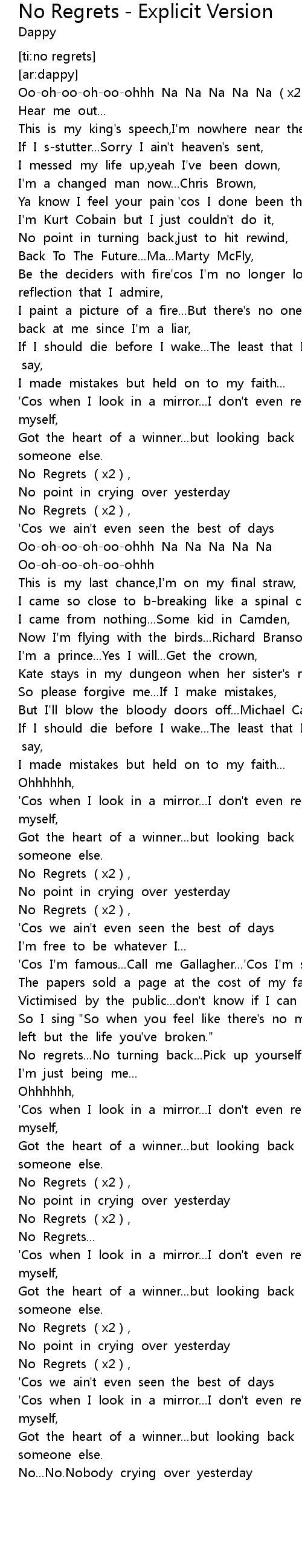 | [03:35.58] | No... No. Nobody crying over yesterday |