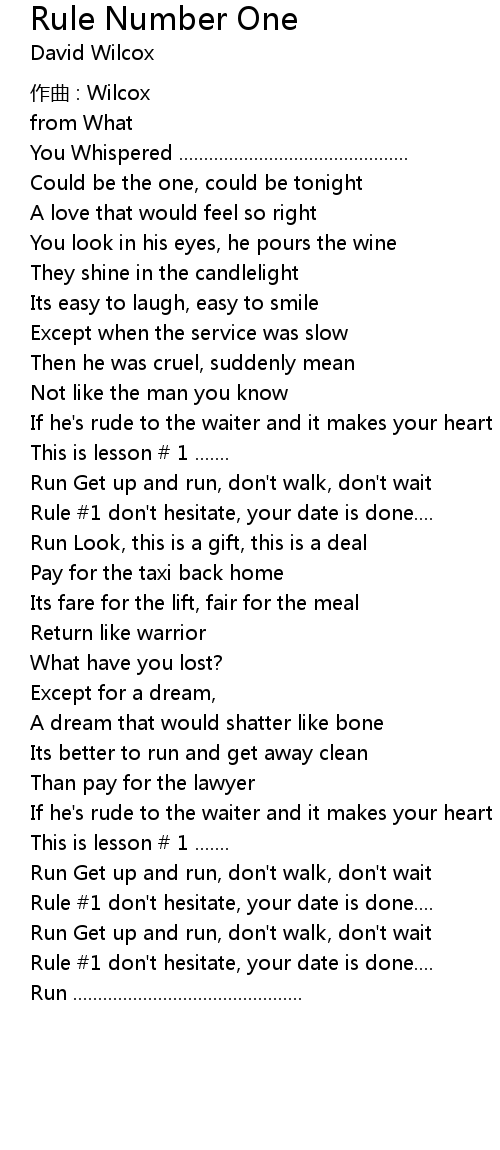 | Song | Rule Number One |