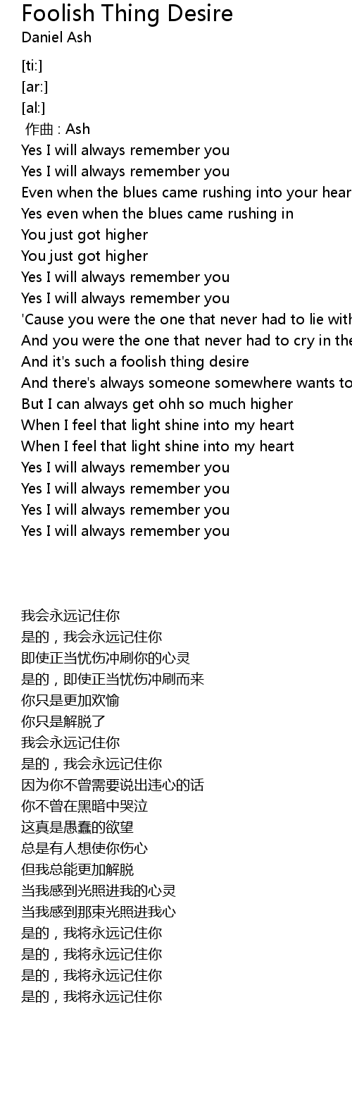 | [05:01.93] | Yes I will always remember you |