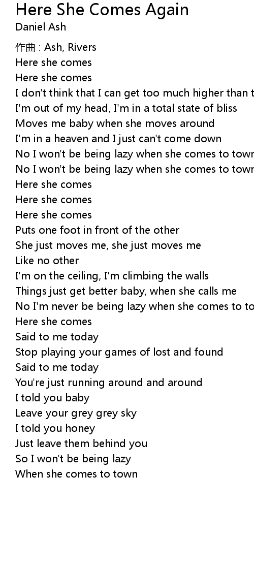 | Song | Here She Comes Again |
