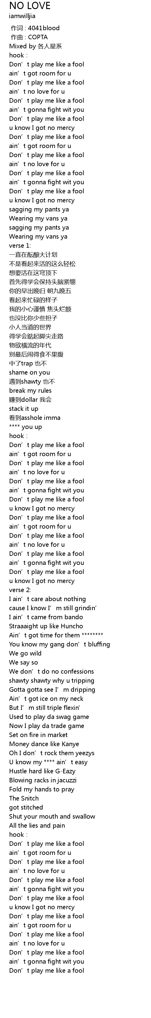 | [00:16.033] | ain' t no love for u |