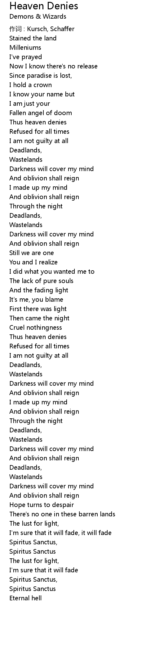 | Song | Heaven Denies |