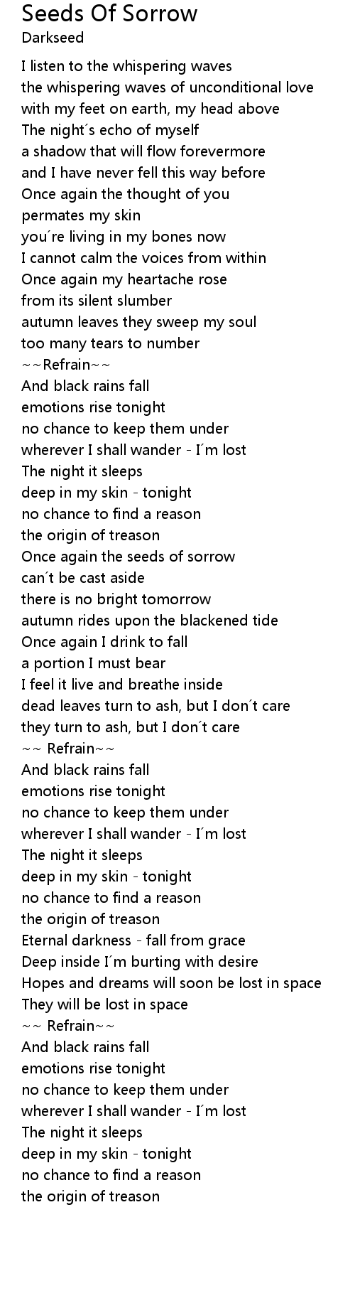 | Song | Seeds Of Sorrow |