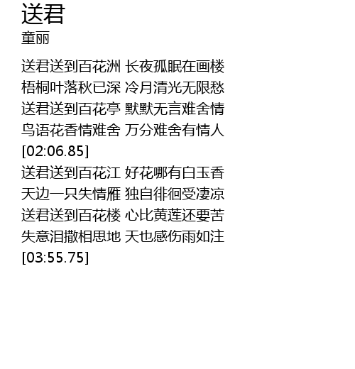 | [00:52.76] | 送君送到百花洲 长夜孤眠在画楼 |
