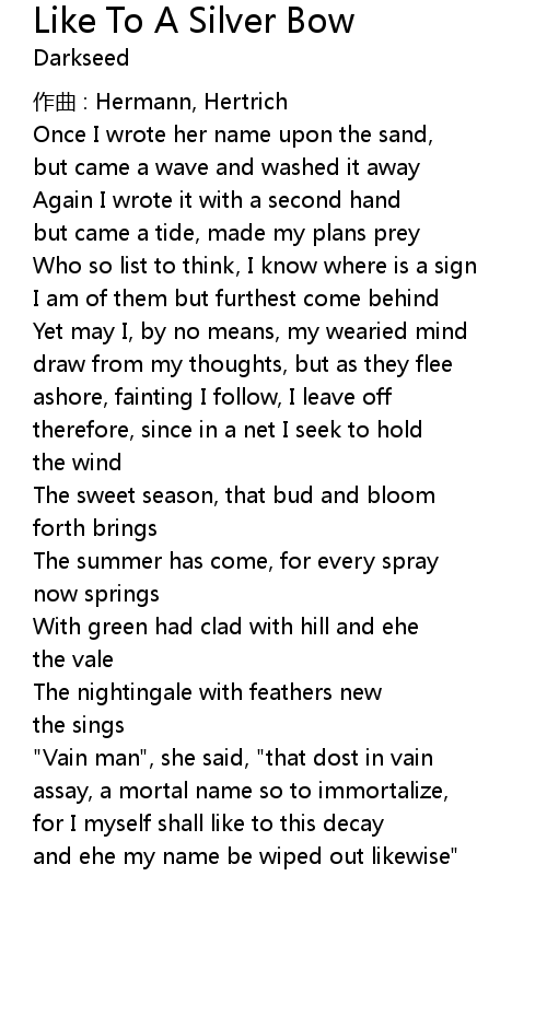 | Song | Like To A Silver Bow |