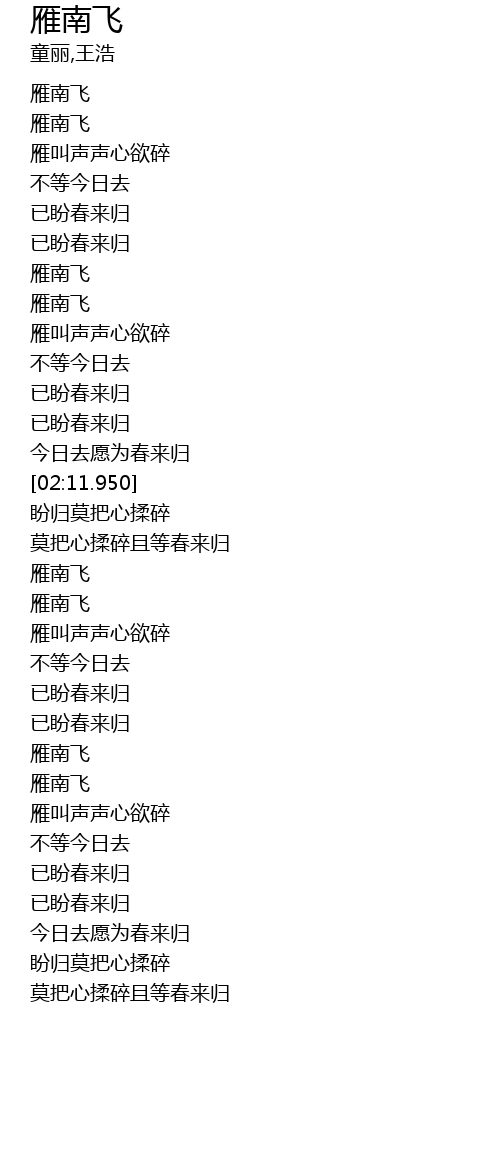 | [00:39.930] | 雁南飞 |