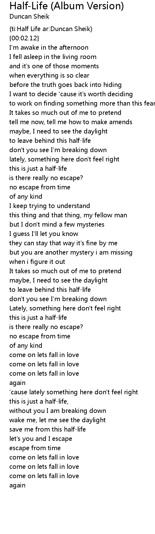 (ti:Half Life ar:Duncan Sheik) |