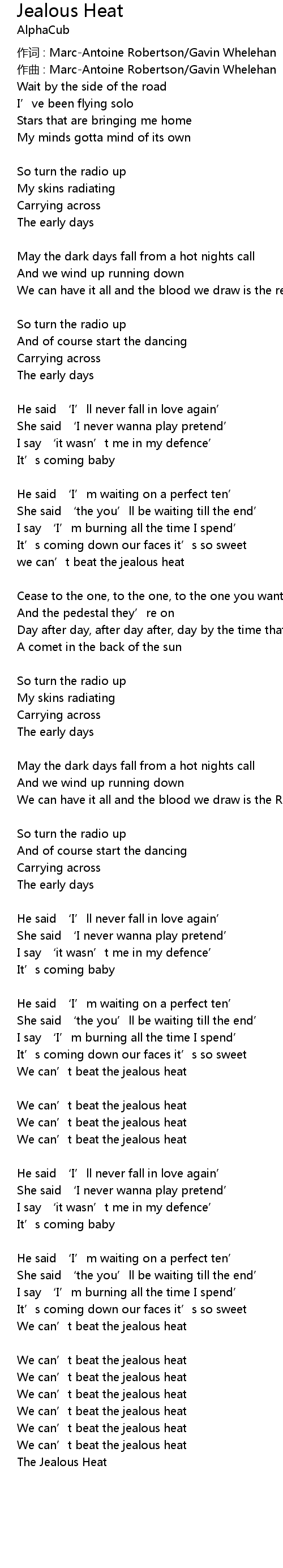 | 作词 : Marc-Antoine Robertson/Gavin Whelehan | |