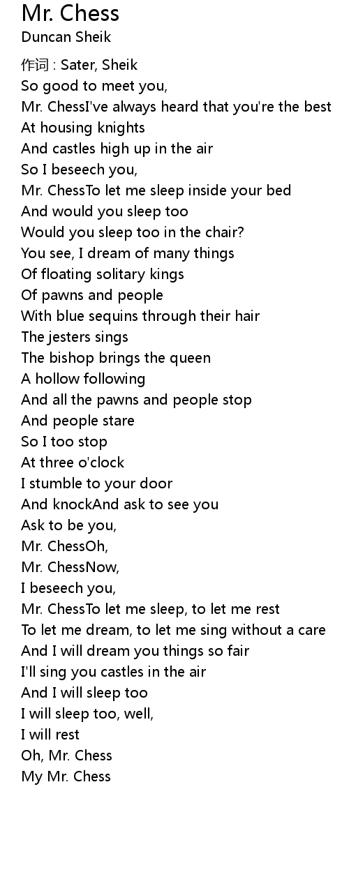 | Song | Mr. Chess |