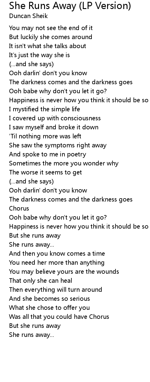 She Runs Away (LP Version) Lyrics