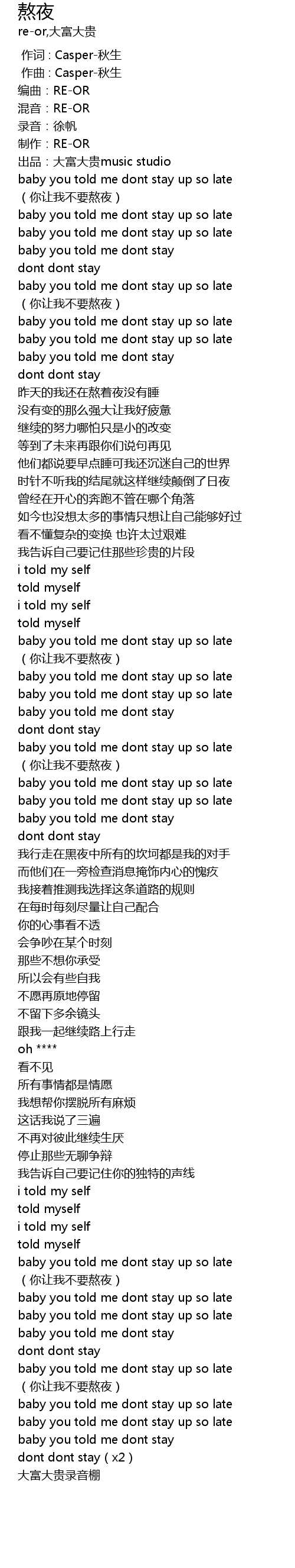 | [03:21.634] | nǐ ràng wǒ bú yào áo yè |