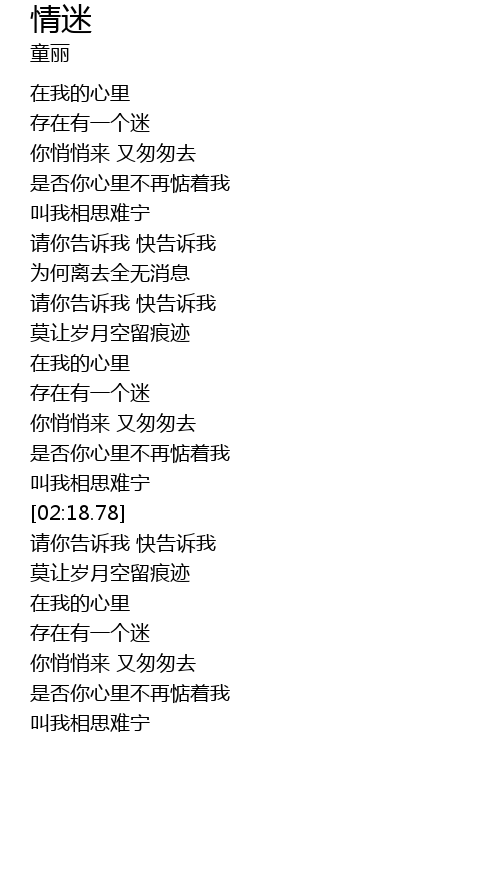 | [01:53.38] | 你悄悄来 又匆匆去 |