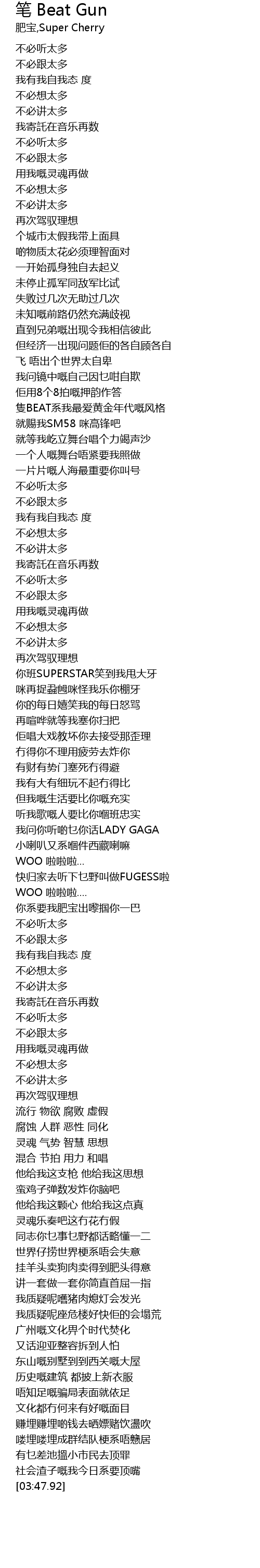 | [02:57.25] | 蛮鸡子弹数发炸你脑吧 |