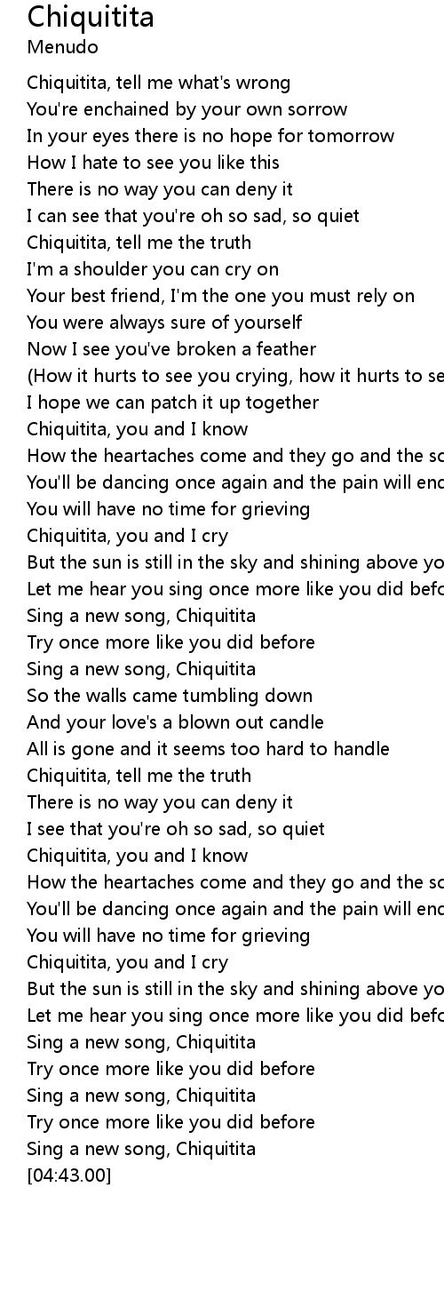Chiquitita, you and I know |