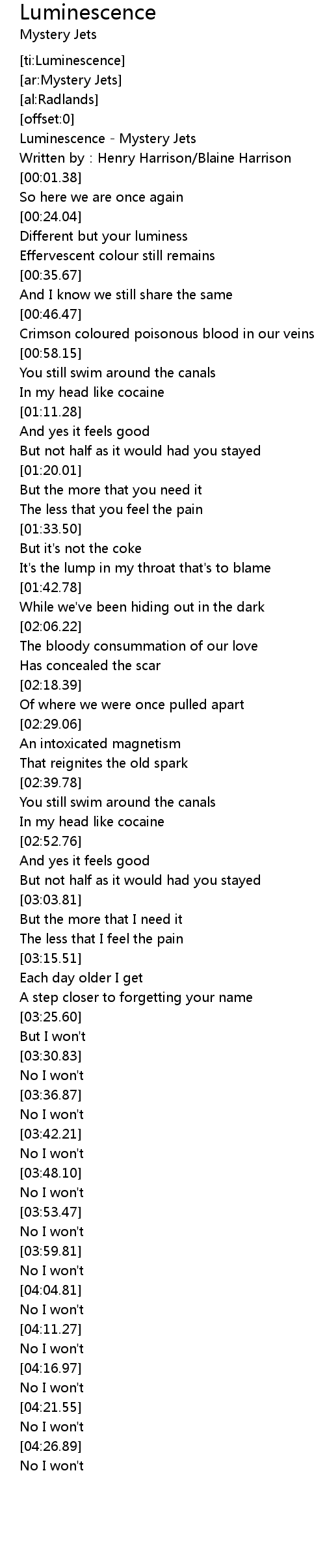 | [00:00.40] | Luminescence Mystery Jets |