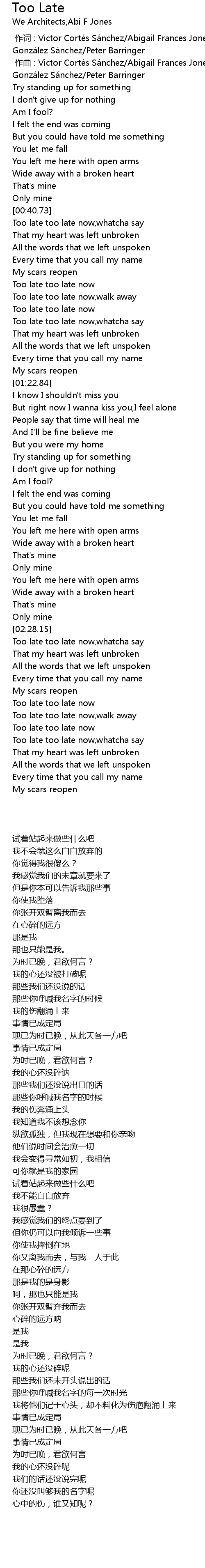 | [00:00.000] | zuo ci : Victor Corte s Sa nchez Abigail Frances Jones Alvaro Manuel Gonza lez Sa nchez Peter Barringer |