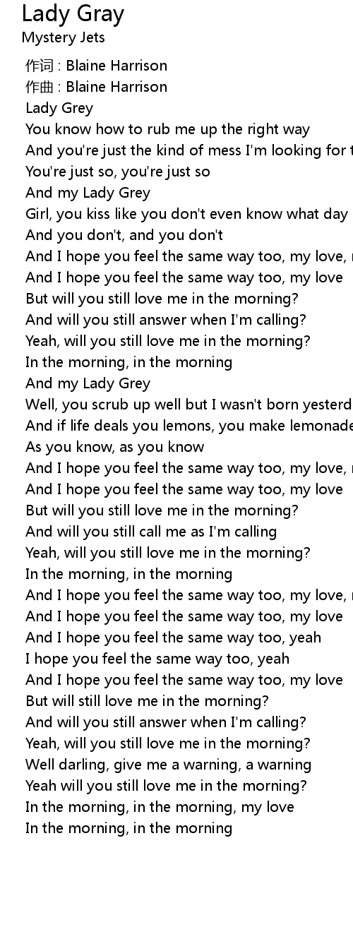 | [02:59.459] | Yeah, will you still love me in the morning? |