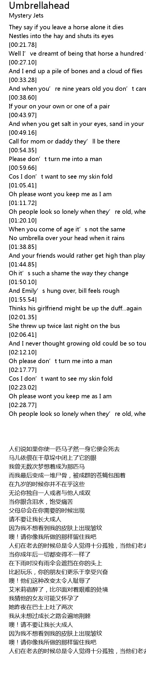 | [02:19.64] | Cos I don’t want to see my skin fold |