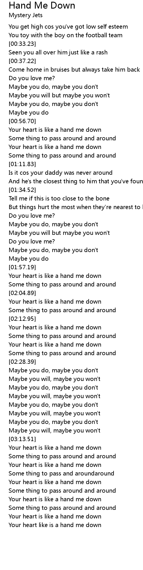 Your heart like is a hand me down |