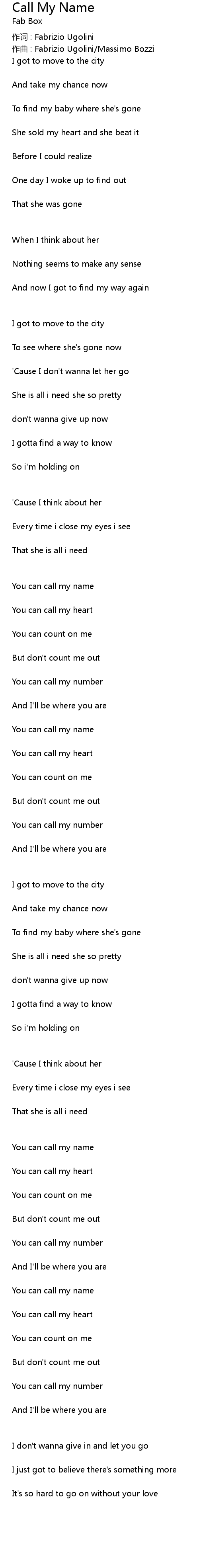 | 作词 : Fabrizio Ugolini | |