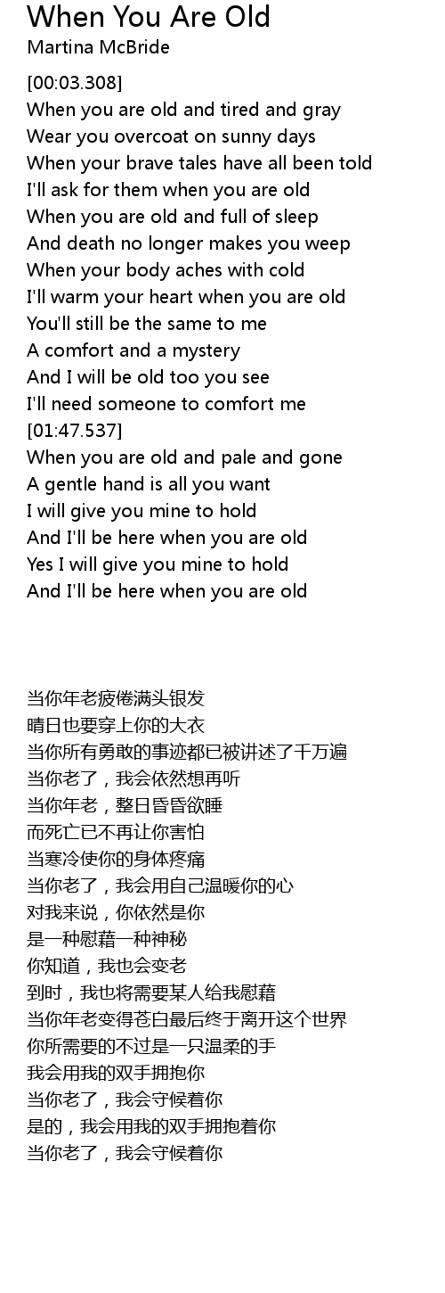 And I'll be here when you are old |