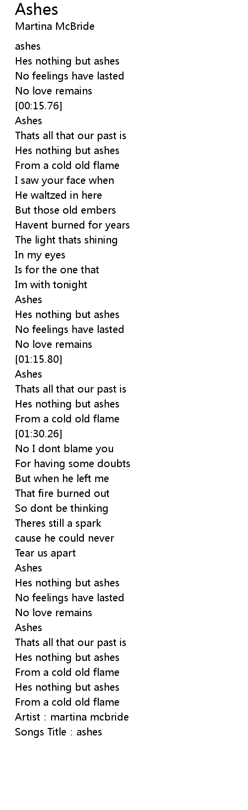 | [00:01.15] | ashes |