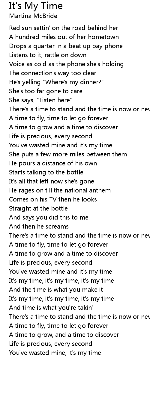 It's my time, it's my time, it's my time |