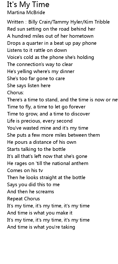 | It' s my time, it' s my time, it' s my time | |