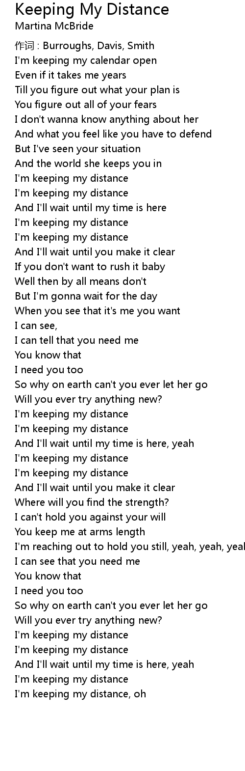 | I' m keeping my distance, oh |