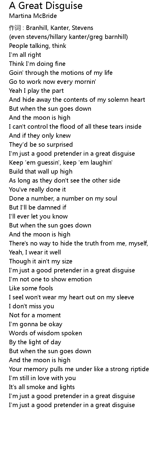 | I'm just a good pretender in a great disguise | |