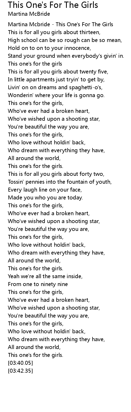 This one's for the girls, |