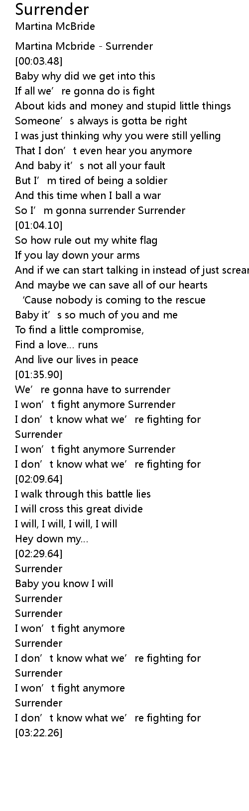 | [00:47.25] | So I' m gonna surrender Surrender |