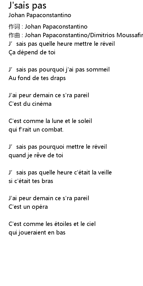 | Song | J'sais pas |