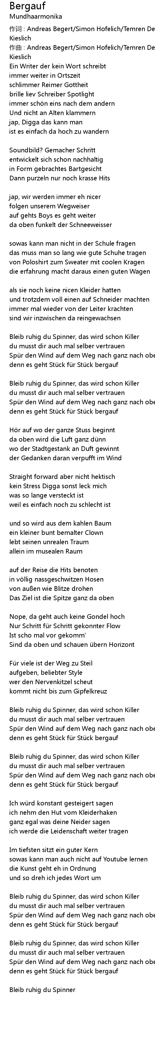 | Song | Bergauf |