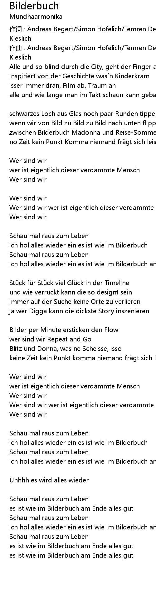| 作词 : Andreas Begert/Simon Hofelich/Temren Demirbolat/marcel Chylla/matthias Kieslich | |