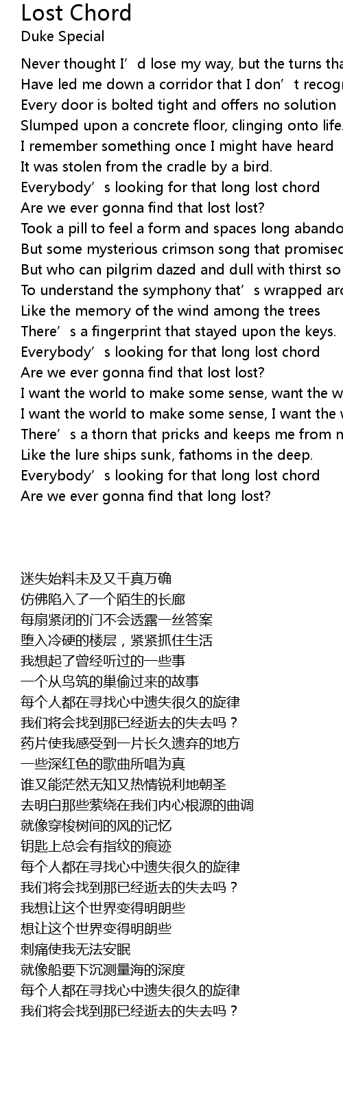 | [02:53] | Everybody' s looking for that long lost chord |