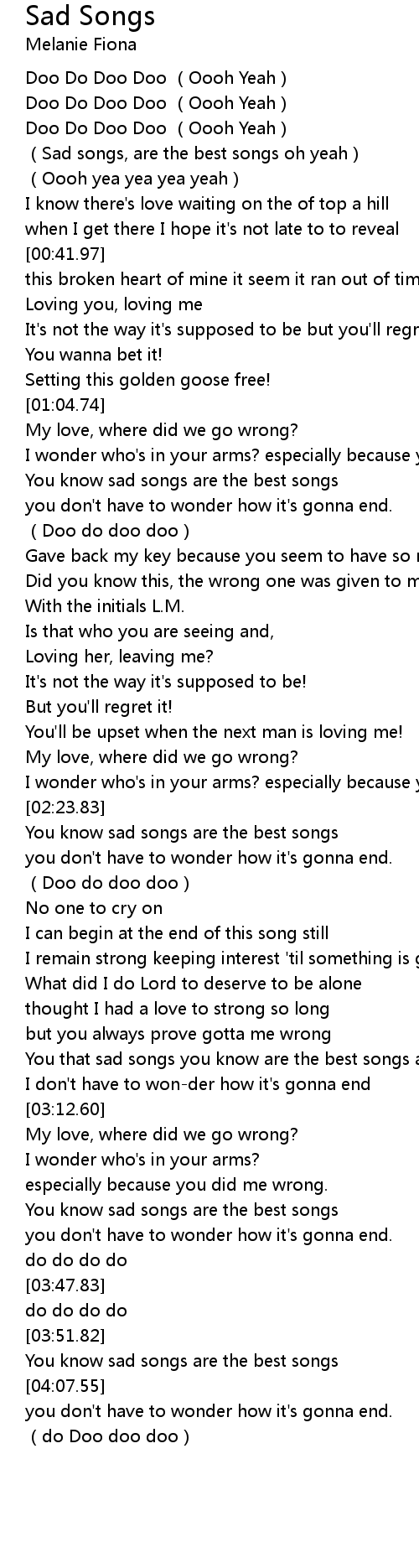 | [00:16.64] | (Sad songs, are the best songs oh yeah) |