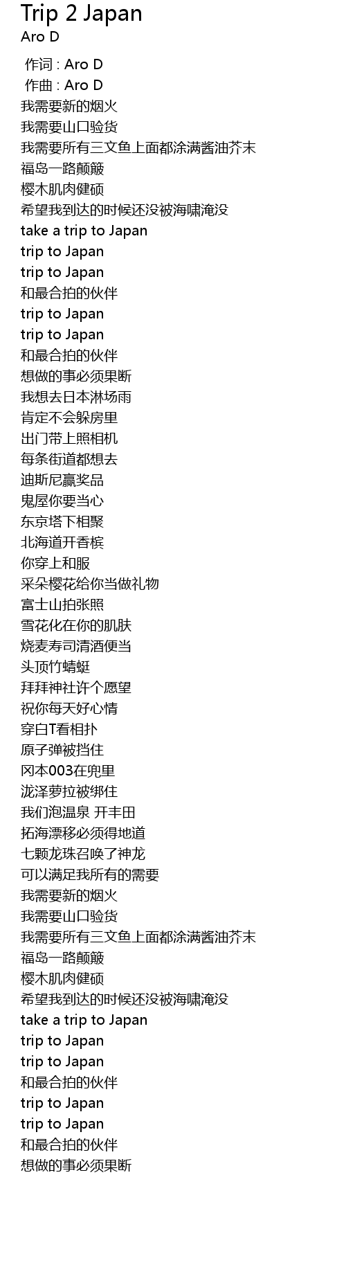| [00:00.000] | 作词 : Aro D |