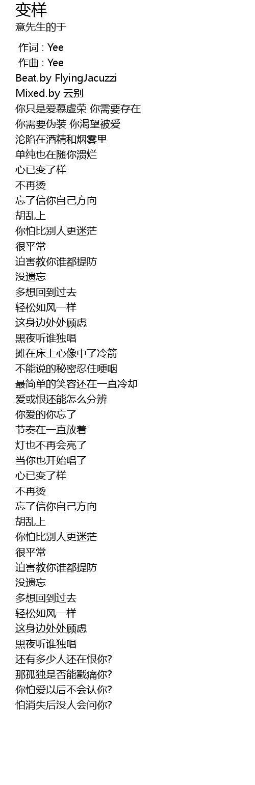 | [00:14.171] | xīn yǐ biàn le yàng |